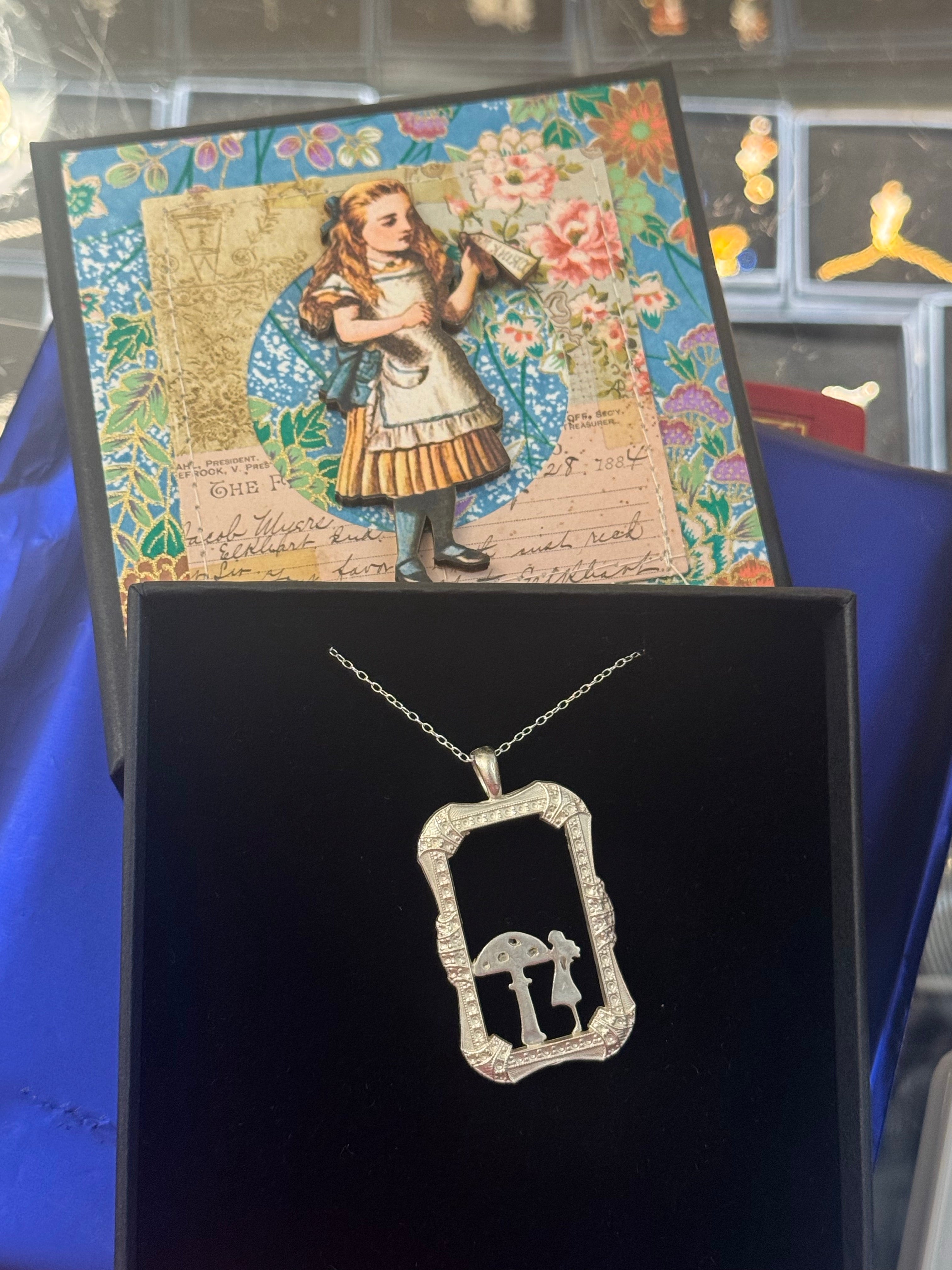 Silver Alice Who are you pendant . Exclusive in Alice’s shop silver jewellery.
